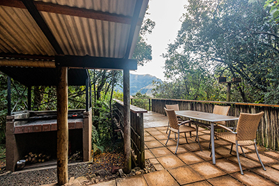We have two private and secluded cabins, each sleeping only two adults: Inyoka cabin is set within indigenous forest next to a babbling stream; Ingwe cabin has a lovely view of the Little Berg. There is secure undercover parking next to both cabins.