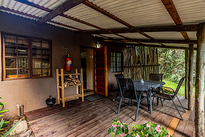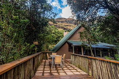 We have two private and secluded cabins, each sleeping only two adults: Inyoka cabin is set within indigenous forest next to a babbling stream; Ingwe cabin has a lovely view of the Little Berg. There is secure undercover parking next to both cabins.